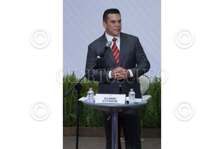 CIUDAD DE MÉXICO, 07AGOSTO2019.- Alejando Moreno, candidato a la presidencia del PRI, duramente el segundo debate entre candidatos a la presidencia del comité ejecutivo del Partido Revolucionario Institucional. FOTO: ROGELIO MORALES /CUARTOSCURO.COM