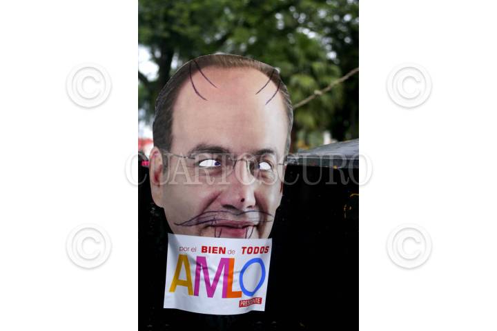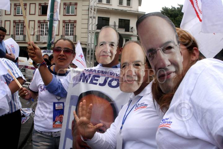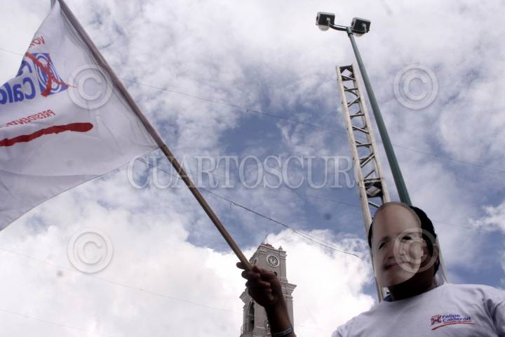 XALAPA, VERACRUZ 06JUNIO2006.- Seguidores de Felipe Calderón Hinojosa y de Andréz Manuel López Obrador se disputan la palaza lerdo de esta ciudad cada quien apoyandoa a su candidato para el debate de esta noche. FOTO: Carlos Tischler/CUARTOSCURO.COM