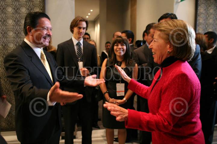 MÉXICO, D.F., 05NOVIEMBRE2009.- Carlos Navarrete, presidente de la mesa directiva del Senado de la República, saluda a Georgina Kessel, Secretaria de Energía, en el marco de su participación en el Foro Económico Bloomberg " México 2010: Superando la Crisis Crediticia". FOTO: CUARTOSCURO.COM
