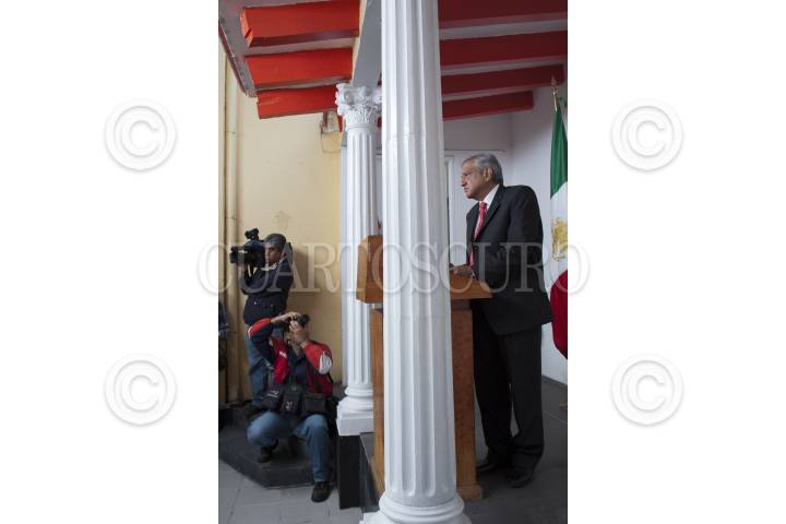 MÉXICO, D.F., 24ABRIL2012.- Andrés Manuel López Obrador, candidato a la Presidencia de la República por el Movimiento Progresista, ofreció su acostumbrada conferencia mañanera en la cual fue cuestionado sobre el rechazo del candidato priista Enrique Peña Nieto, a no querer participar en los debates no organizados por el IFE. FOTO: MOISÉS PABLO /CUARTOSCURO.COM