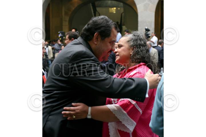 MÉXICO, D.F., 13MAYO2008.- Héctor Larios, coordinador de los diputados del PAN y Beatriz Paredes, dirigente nacional del PRI, durante el debate sobre "Los Principios que deben regir la Reforma Energética en México" realizado en el Senado de la República. FOTO: MOISÉS PABLO/CUARTOSCURO.COM