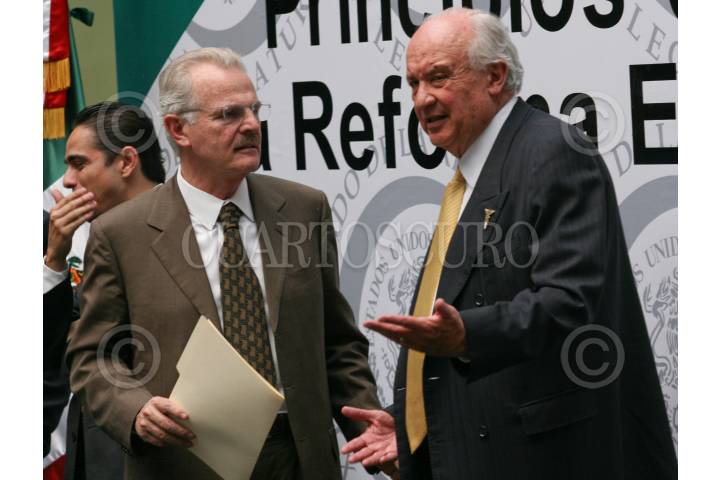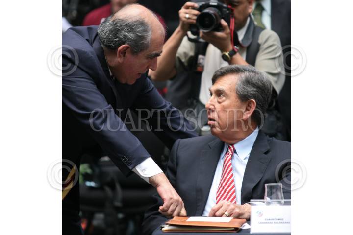 MÉXICO, D.F., 13MAYO2008.- Francisco Labastida, senador del PRI conversa con José Agustín Pinchetti, integrante del "gobierno legítimo", durante el debate sobre "Los Principios que deben regir la Reforma Energética en México" realizado en el Senado de la República. FOTO: MOISÉS PABLO/CUARTOSCURO.COM