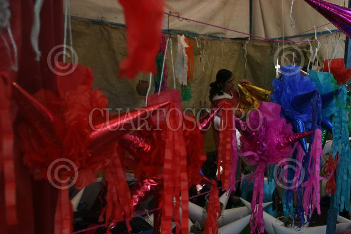 MÉXICO D.F., 22DICIEMBRE2008.- Comerciantes elaboran piñatas a base de ollas de barro, engrudo y papeles de colores, para estas fiestas navideñas el simbolismo que existe detrás de las piñatas también es variado hay quien sostiene que cada uno de los picos representa uno de los siete pecados capitales los cuales deben ser vencidos por medio de la fé y al quebrar la piñata se obtienen dulces y frutas como símbolo de la recompensa divina. El contenido de una piñata suele ser frutas de temporada como cacahuates, jícamas, naranjas, limas, tejocotes, cañas y dulces. FOTO: SÁSHENKA GUTIÉRREZ/CUARTOSCURO.COM
