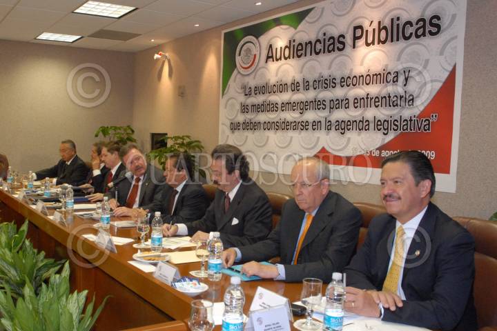 MÉXICO, D.F., 13AGOSTO2009.- Claudio X. González, empresario y Carlos Navarrete, coordinador de los senadores perredistas, durante las audiencias públicas "La evolución de la crisis económica y las medidas emergentes para enfrentarla que deben considerarse en la agenda legislativa", en la Torre del Caballito. FOTO: CUARTOSCURO.COM