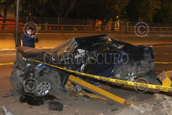 CIUDAD DE MÉXICO., 30MARZO2018.- Un hombre perdió la vida decapitado, al impactar el auto Vento que conducía toda velocidad, e impactar contra la barra de contención de Churubusco, a la altura de calzada de La Viga en la colonia Sector Popular. El lugar fue acordonado por policías de este perímetro. FOTO: LUIS CARBAYO /CUARTOSCURO.COM