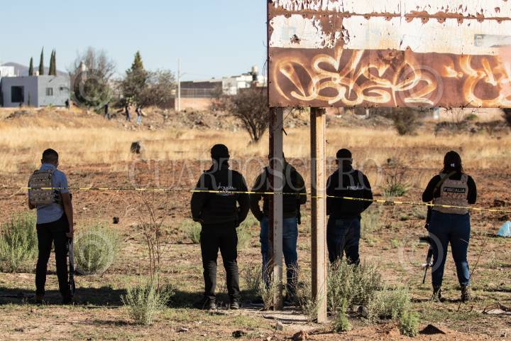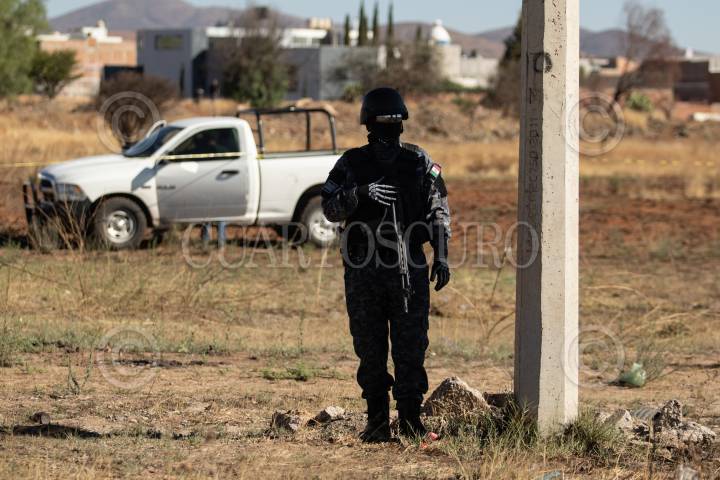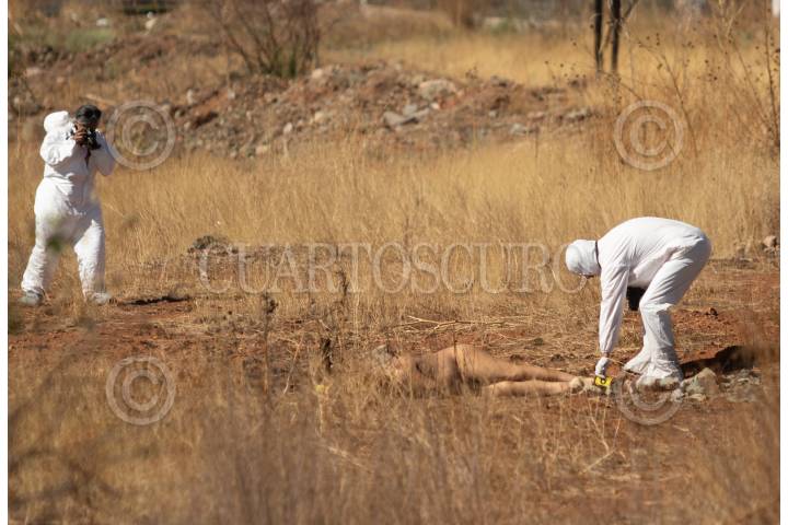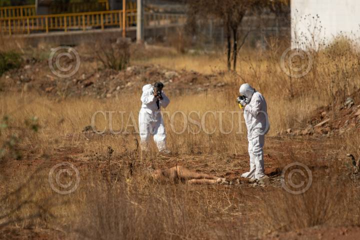 En un predio localizado a unos 200 metros del la bodega conocida como Bonito Pueblo, fue localizado el cadáver de un hombre con la cabeza destruida, aparentemente por un impacto de arma de fuego.