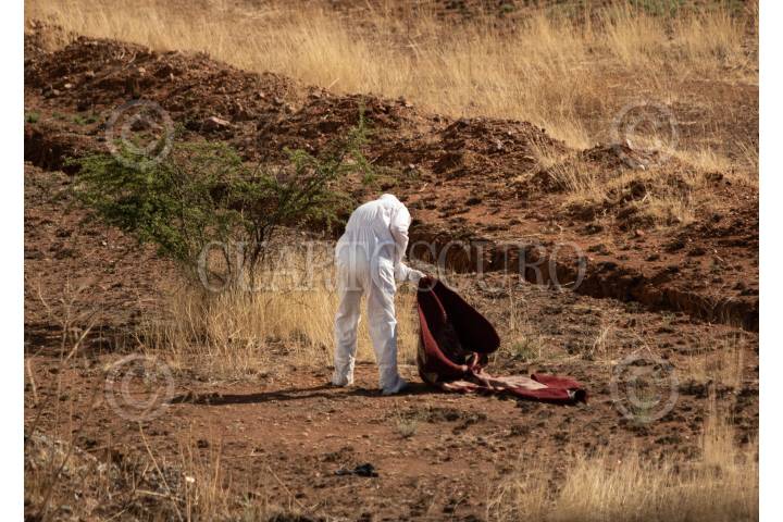 TEMIXCO, MORELOS, 08FEBRERO2019.- Los cadáveres de dos hombres fueron localizados al amanecer de este día en un terreno con maleza seca, antes de llegar al pueblo indígena de Cuentepec. Información oficial dice que otro hombre llegó al hospital comunitario con lesiones en cráneo y brazos producidas por machete, refiriendo que él y las otras dos víctimas provenían de Mazatepec, y fueron citados para hacer un traslado de ganado, para después ser secuestrados; los captores exigieron un rescate que los familiares no pagaron. Así fue como se localizaron los cadáveres citados, uno de ellos decapitado. Familiares se encontraban en la escena del crimen y exigieron que los medios de comunicación se retiraran con sutiles amenazas. FOTO: MARGARITO PÉREZ RETANA /CUARTOSCURO.COM