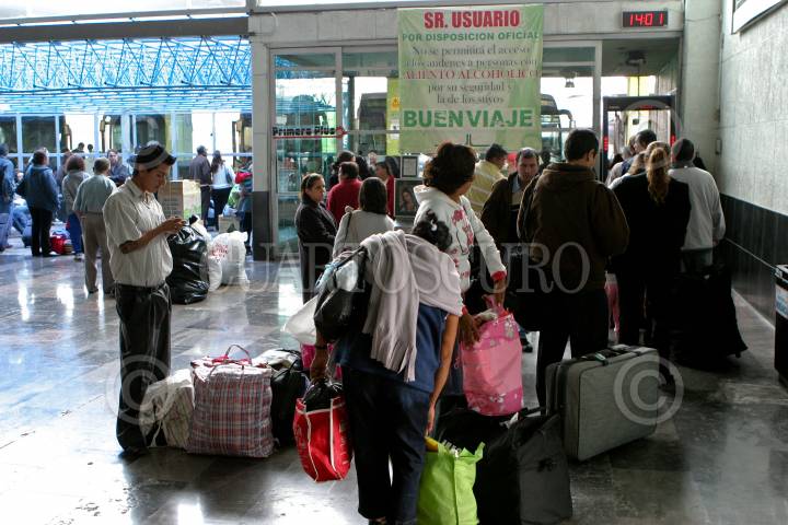 MÉXICO D.F., 19DICIEMBRE2009.- Miles de personas arriban a la Central del Norte para viajar a otras ciudad en este sabado que es el primer día oficial de las vacaciones decembrinas. FOTO: RODOLFO ANGULO/CUARTOSCURO.COM