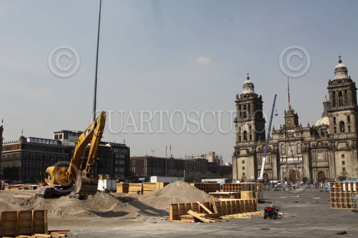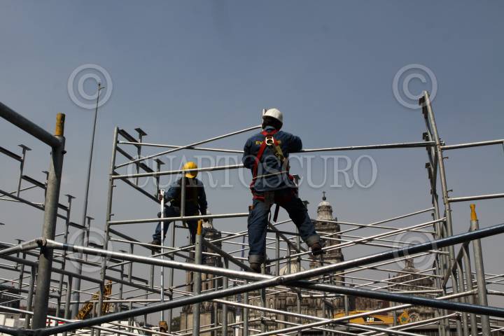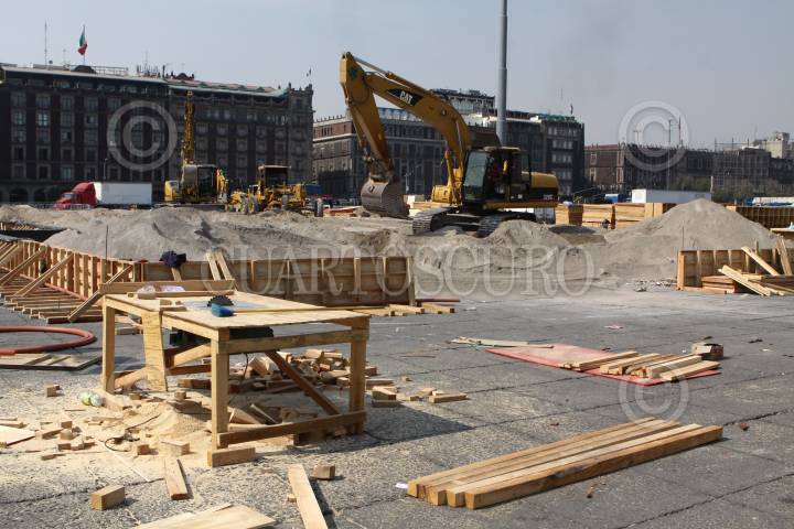 MÉXICO, D.F., 26NOVIEMBRE2010.- En el Zócalo capitalino comienza la instalación de la Pista de Hielo que construye el Gobierno del Distrito Federal como parte de las fiestas decembrinas. FOTO: RODOLFO ANGULO/CUARTOSCURO.COM