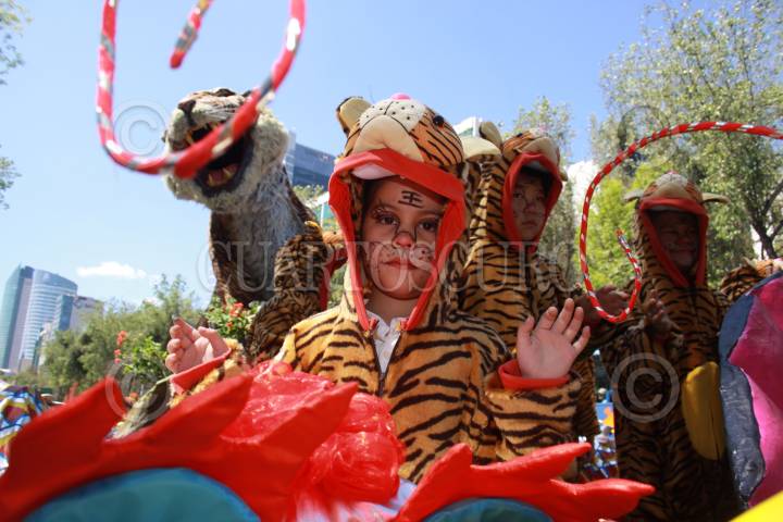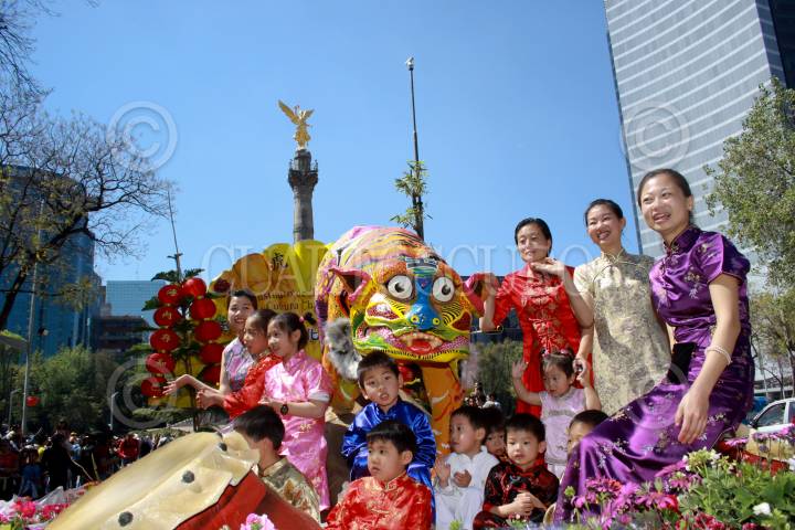MÉXICO, D.F., 13FEBRERO2010.- Una decena de carros alegóricos y miembros de la comunidad China en México, desfilaron sobre avenida Paseo de la Reforma, para celebrar el Año Nuevo Chino, que está dedicado al tigre. FOTO:SÁSHENKA GUTIÉRREZ/CUARTOSCURO.COM