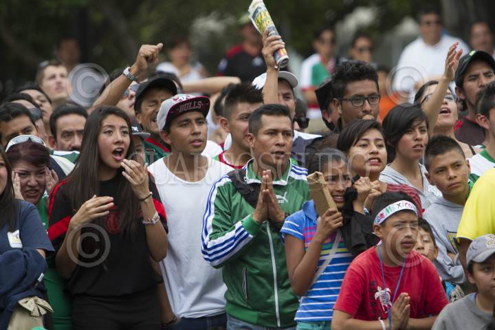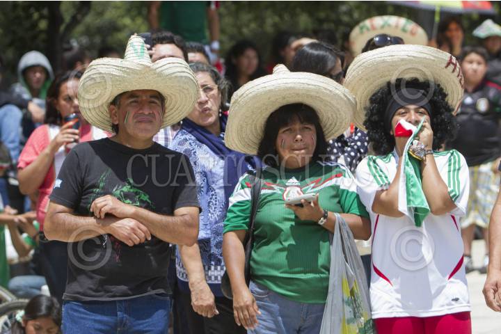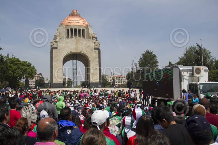 MÉXICO, D.F., 29JUNIO2014.- Decenas de personas acudieron a ver el encuentro entre la selección nacional de futbol, en plancha del Monumento a la Revolución que con un marcador de 2-1 fue derrotada por su similar de Holanda. FOTO: GUILLERMO PEREA /CUARTOSCURO.COM