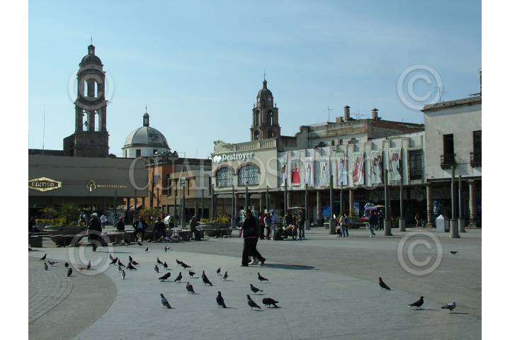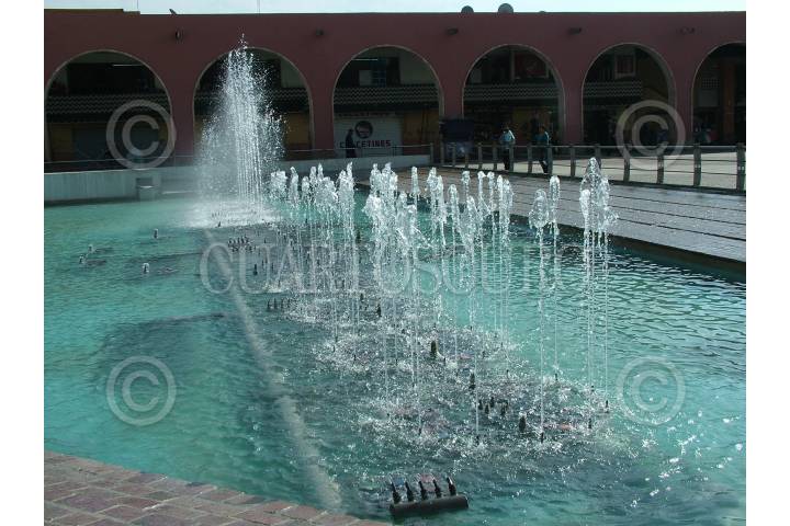 IRAPUATO, GUANAJUATO 11ENERO2009.- Irapuato se identifica principalmente por las fresas, de las que es uno de los productores más importantes del País el origen del nombre de Irapuato se basa en dos versiones; Eraitzicutzio de raíces Purépechas, quiere decir "Lugar donde se ve la Luna y la otra Irap: "Cerro o cosa redonda"; Hua;"emerge en una llanura" y to: terminación que nos da el topónimo de "Irap-hua-to" que significa: "cerro que emerge de la llanura". En la imágen las fuentes que se ubican en la Plaza Hidalgo. FOTO: MARIO NULLO/CUARTOSCURO.COM