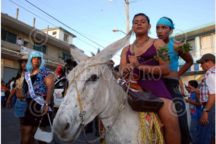 ALVARADO, VERACRUZ 11OCTUBRE2009.- Se realizó uno de los eventos más esperados en el año en lo que a celebraciones se refiere, dentro de las Fiestas Titulares de Alvarado, se podría decir que es la etapa cumbre de nuestras celebres fiestas, es el Encierro de Burros, donde se ve a los hombres vistiendo ropa de mujer mientras bailan en la calle. FOTO: JOSÉ CANDELARIO/CUARTOSCURO.COM