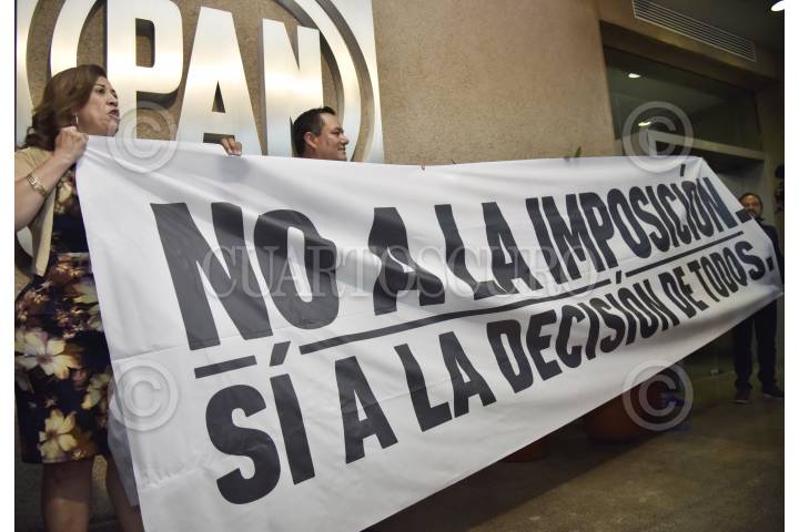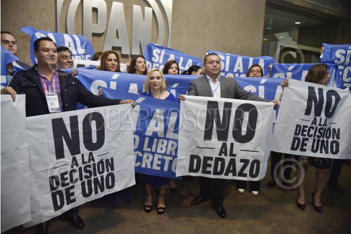 CIUDAD DE MÉXICO, 18NOVIEMBRE2017.- Miembros del Comité Ejecutivo Nacional del Partido Acción Nacional (PAN) previo al inicio de la Sesión Extraordinaria, se manifestaron en contra de las decisiones de Ricardo Anaya, presidente Nacional del PAN, para la postulación del candidato presidencial para el Frente Ciudadano por México. FOTO: MARIO JASSO /CUARTOSCURO.COM