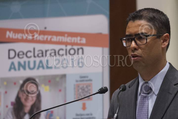 CIUDAD DE MÉXICO, 08MAYO2017.- Osvaldo Santín, jefe del Sistema de Administración Tributaria (SAT), presentó los resultados de la nueva herramienta "Declaración Anual 2016", en el Palacio Nacional. FOTO: MOISÉS PABLO /CUARTOSCURO.COM
