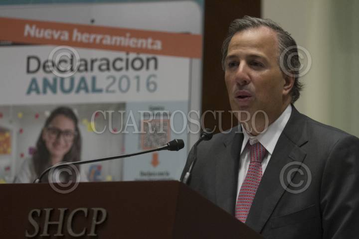 CIUDAD DE MÉXICO, 08MAYO2017.- José Antonio Meade Kuribreña, Secretario de Hacienda y Crédito Público (SHCP), presentó los resultados de la nueva herramienta "Declaración Anual 2016", en el Palacio Nacional. FOTO: MOISÉS PABLO /CUARTOSCURO.COM