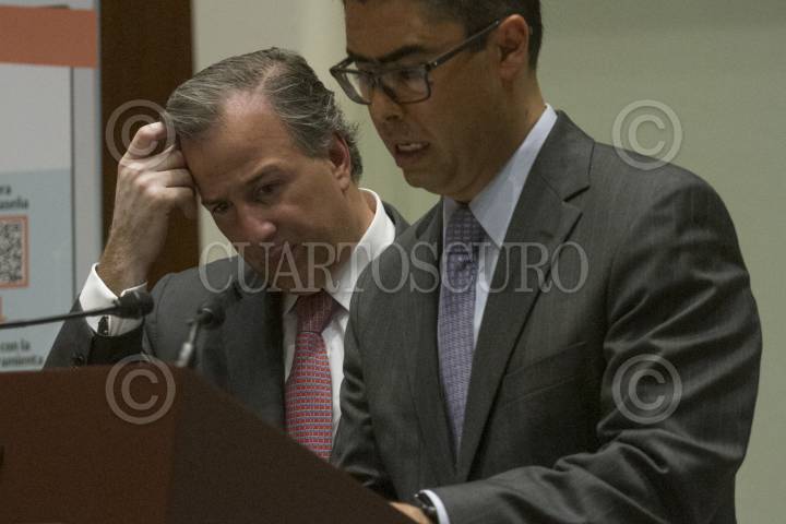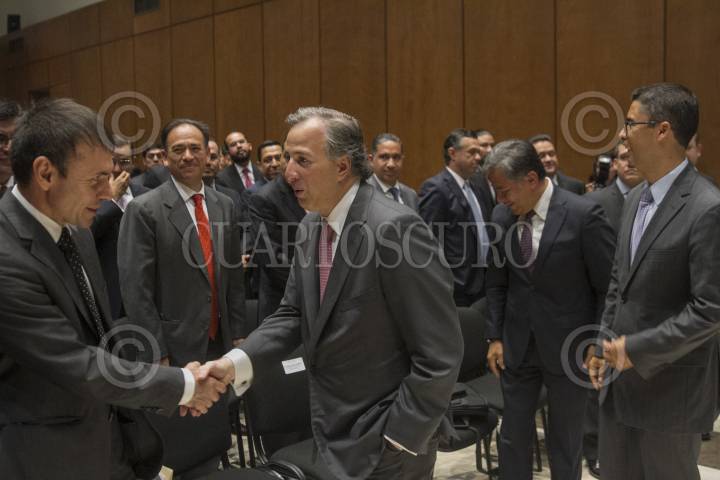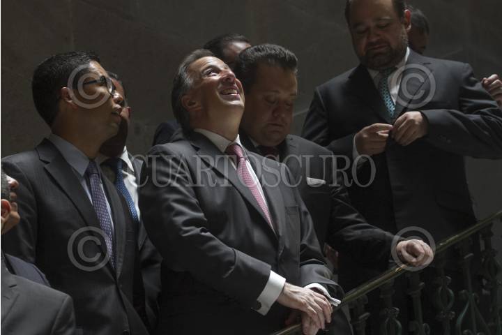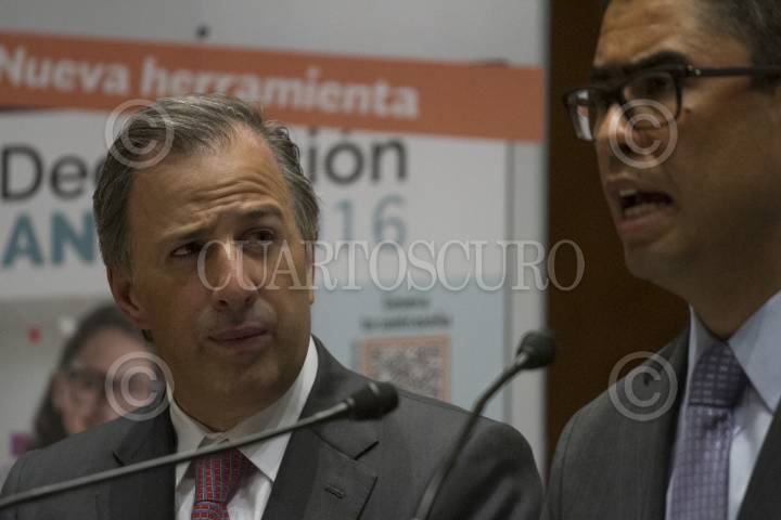 CIUDAD DE MÉXICO, 08MAYO2017.- José Antonio Meade Kuribreña, Secretario de Hacienda y Crédito Público (SHCP), y Osvaldo Santín, jefe del Sistema de Administración Tributaria (SAT), presentaron los resultados de la nueva herramienta "Declaración Anual 2016", en el Palacio Nacional. FOTO: MOISÉS PABLO /CUARTOSCURO.COM