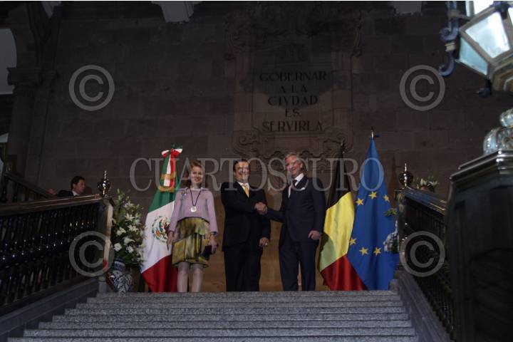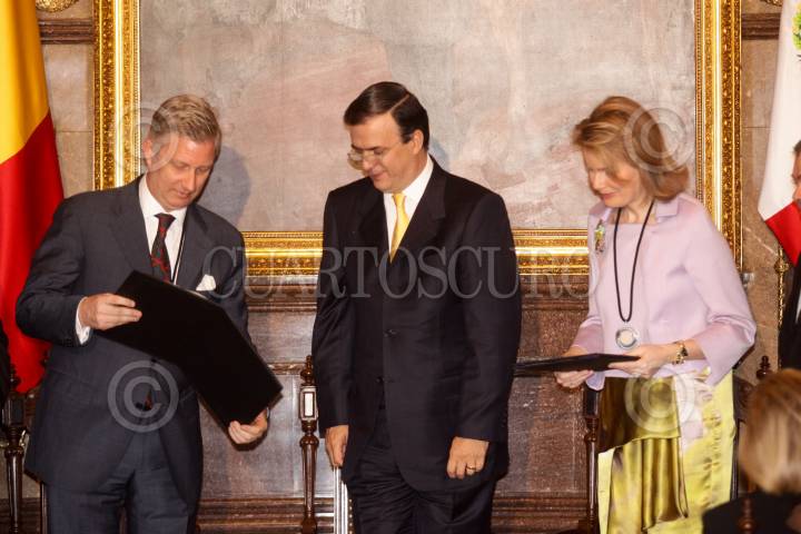 MÉXICO, D.F., 24MARZO2009. El jefe de Gobierno del Distrito Federal, Marcelo Ebrard Casaubon, declaró huéspedes distinguidos a los príncipes de Bélgica, Philippe y Mathilde, a quienes entregó la medalla y el pergamino de la ciudad de México. FOTO: SÁSHENKA GUTIERREZ/CUARTOSCURO.COM