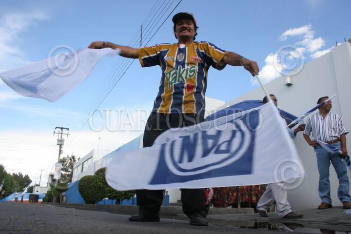 SAN LUIS POTOSÍ, SAN LUIS POTOSÍ, 05JULIO2009.- Después de una declaración del Candidato a gobernador por el PAN, Alejandro Zapata quien se declaro ganador con una ventaja de 6 por ciento de los votos algunas personas con banderas de este partido salieron a festejar a las calles. FOTO: RICARDO CASTELAN/CUARTOSCURO.COM