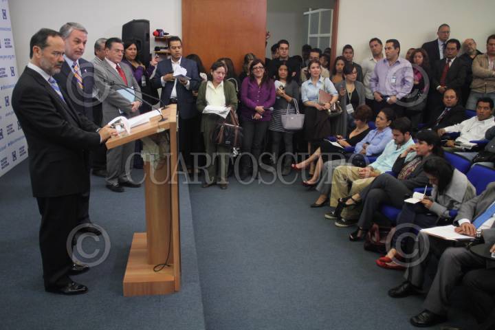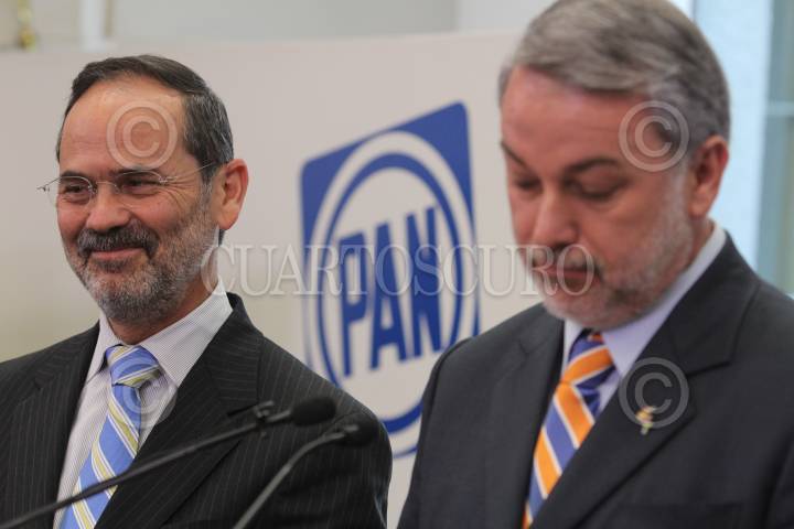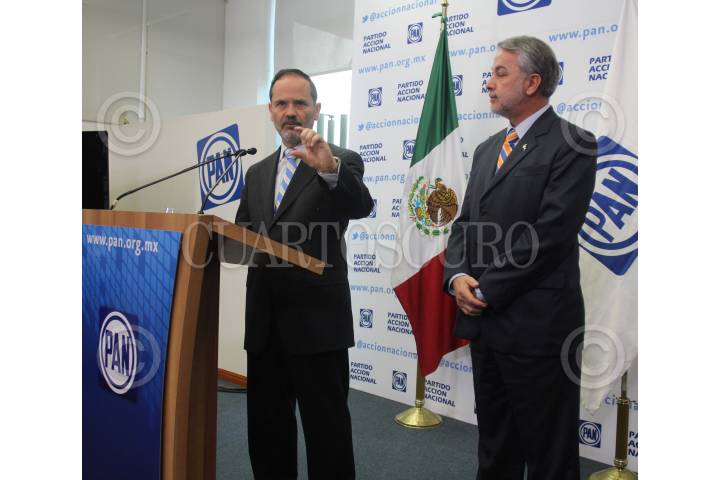 MÉXICO, D.F., 22SEPTIEMBRE2011.- Emilio González Márquez, gobernador de Jalisco en compañía de Gustavo Madero, presidente nacional del PAN anunciaron la declinación de González Márquez a competir por la candidatura del PAN a la Presidencia de la República. FOTO: SAÚL LÓPEZ/CUARTOSCURO.COM