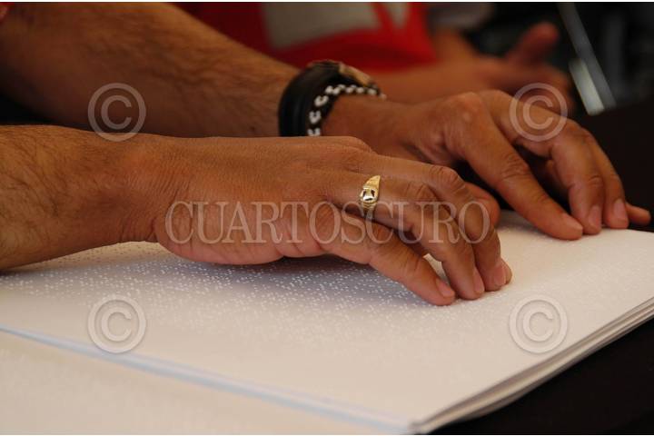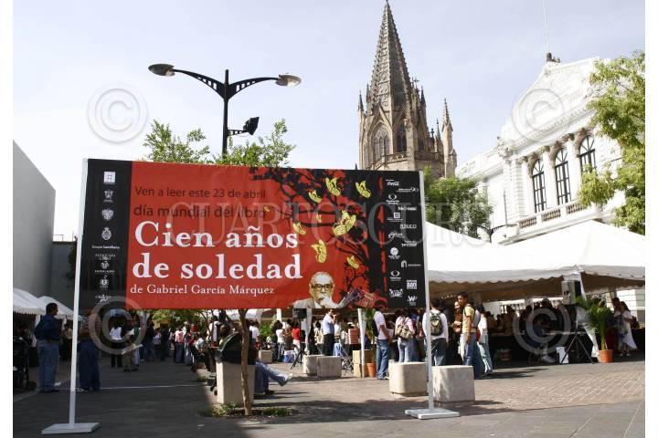 GUADALAJARA,JALISCO23ABRIL2007.- Con motivo del Día Internacional del Libro la Feria del Libro de Guadalajara, organizó su ya tradicional lectura de un libro: edición dedicada a "Cien años de soledad" de Gabriel García Márquez, y a la cual asistieron el gobernador del estado Emilio Gonzalez Marquez, Carlos Briseño rector de la Universidad de Guadalajara y Raul Padilla Lopez presidente de la FIL, entre otras personalidades así como una gran cantidad de Jóvenes. Algunos de los pasajes de la obra de Gabriel Garcia Marquez fueron leídos por invidentes en libros especiales editados en braile. FOTO JOSE MARIA MARTINEZ/CUARTOSCURO.COM