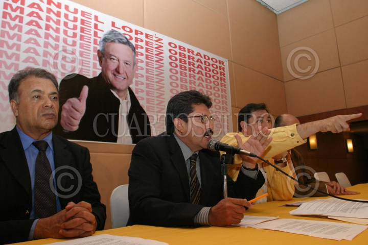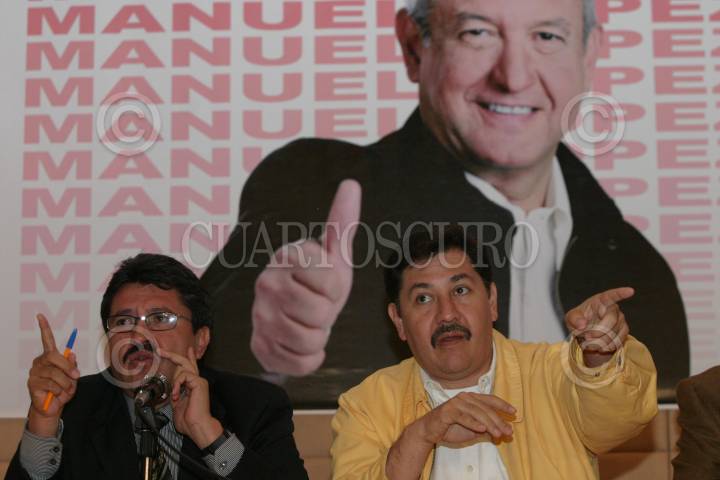 MEXICO, D.F., 07JULIO2006.- Ricardo Monreal y Gerardo Fernández Noroña, integrantes del comite para defender la victoria de Andrés Manuel López Obrador, ofrecieron una conferencia de prensa, para dar a conocer los pasos que seguirán en la impuganción de la elección presidencial en la que según el IFE ganó el panista Felipe Calderón. FOTO: Moisés Pablo/CUARTOSCURO.COM