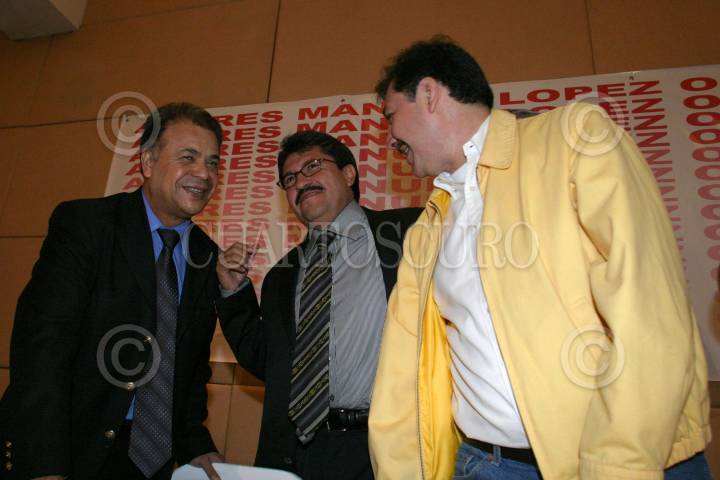 MEXICO, D.F., 07JULIO2006.- Alberto Anaya, Ricardo Monreal y Gerardo Fernández Noroña, integrantes del comite para defender la victoria de Andrés Manuel López Obrador, ofrecieron una conferencia de prensa, para dar a conocer los pasos que seguirán en la impuganción de la elección presidencial en la que según el IFE ganó el panista Felipe Calderón. FOTO: Moisés Pablo/CUARTOSCURO.COM