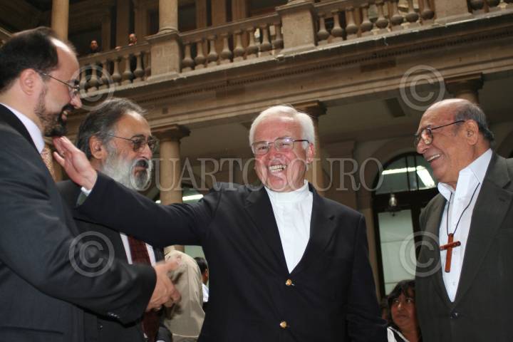 MÉXICO D.F. 30MAYO2007.- Se llevo a cabo la inauguración del seminario internacional "El derecho a defender los derechos humanos y la libertad de expresión"; al evento asistieron Emilio Álvarez Icaza, presidente de la CNHDF, Guillermo del Valle, ganador del premio nacional de derechos humanos "Don Sergio Mendez Arceo 2007" y Samuel Ruíz, obispo merito de San Cristobal. FOTO: GUILLERMO MARTÍNEZ/CUARTOSCURO.COM