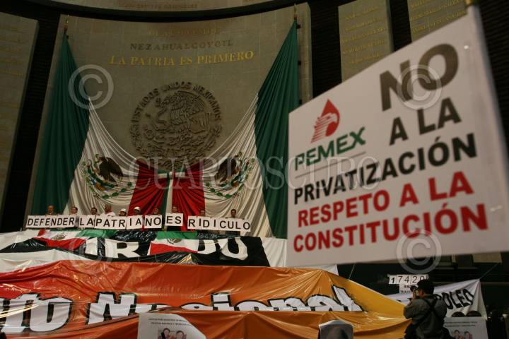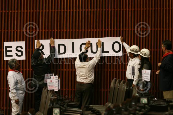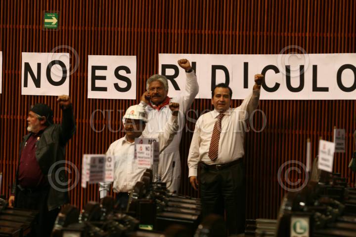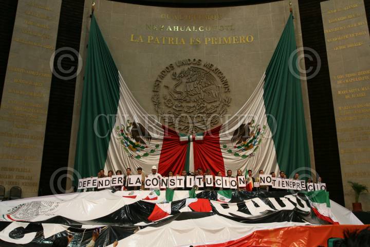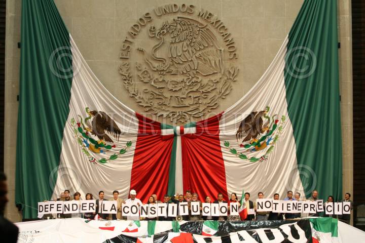 MÉXICO D.F. 14ABRIL2008.-Diputados integrantes de la FAP realizan la frase del día con la leyenda "Defender la Constitución no tiene Precio".esto en salón de plenos que mantienen tomado desde hace 15n días. FOTO: GUILLERMO PEREA /CUARTOSCURO.COM