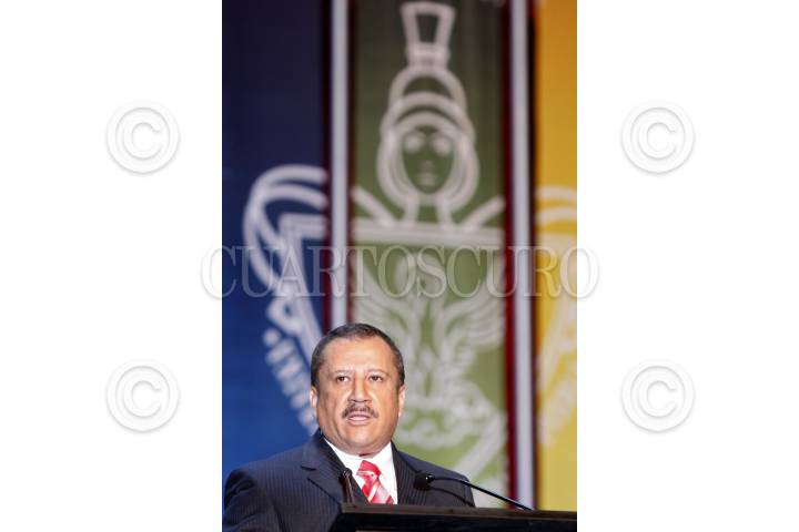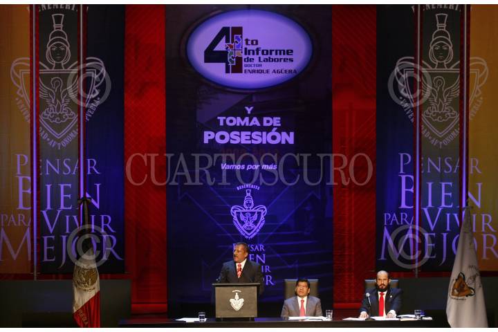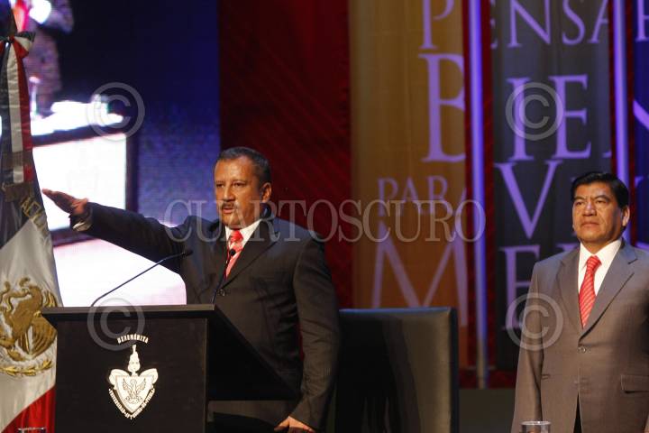 PUEBLA, PUEBLA, 04OCTUBRE2009.- Enrique Agüera Ibañez, rector de la Benemérita Universidad Autónoma de Puebla (BUAP), rindió su cuarto informe de actividades y tomó protesta para dirigir a la máxima casa de estudios del estado para el periodo 2009-2013. Teniendo como testigos al gobernador del estado, Mario Marín Torres y diversas personalidades de la vida política y académica, Agüera Ibañez reafirmó que está comprometido con la institución y luchará para defender a la universidad pública. FOTO: FRANCISCO GUASCO/CUARTOSCURO.COM