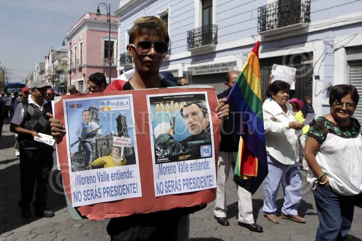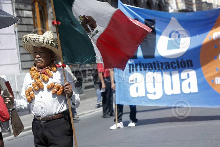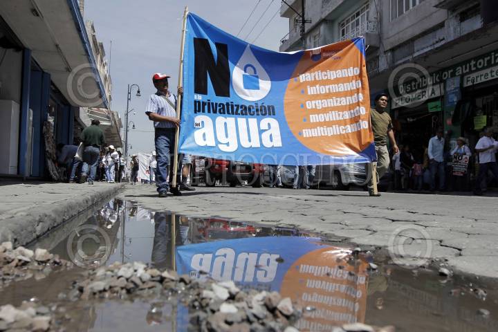 PUEBLA, PUEBLA, 09AGOSTO2014.- Cientos de ciudadanos y organizaciones civiles encabezados por el frente en la defensa del agua y la tierra, se manifestaron por las calles del centro de la ciudad en contra de la privatización del agua y el alza en las tarifas del agua potable. FOTO: HILDA RÍOS /CUARTOSCURO.COM