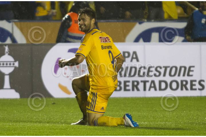 SAN NICOLÁS DE LOS GARZA, NUEVO LEÓN, 17MARZO2015.- Rafael Sobis del equipo de los Tigres de la UANL celebran el primer gol durante el primer tiempo contra el equipo de San José Oruro, en el estadio Universitario, partido correspondiente a fase de grupos de la Copa Libertadores 2015. FOTO: GABRIELA PÉREZ MONTIEL / CUARTOSCURO.COM