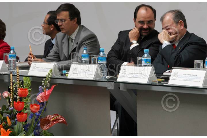 México D.F., a 7 de Febrero de 2008.- Sergio Miguel Cedillo, Marcelo Ebrard, Emilio Alvarez Icaza y Edgar Elías Azad, en el Informe Especial, sobre la defensoría de Oficio del Distrito Federal 2006. FOTO: VICTORIA VALTIERRA/CUARTOSCURO.COM