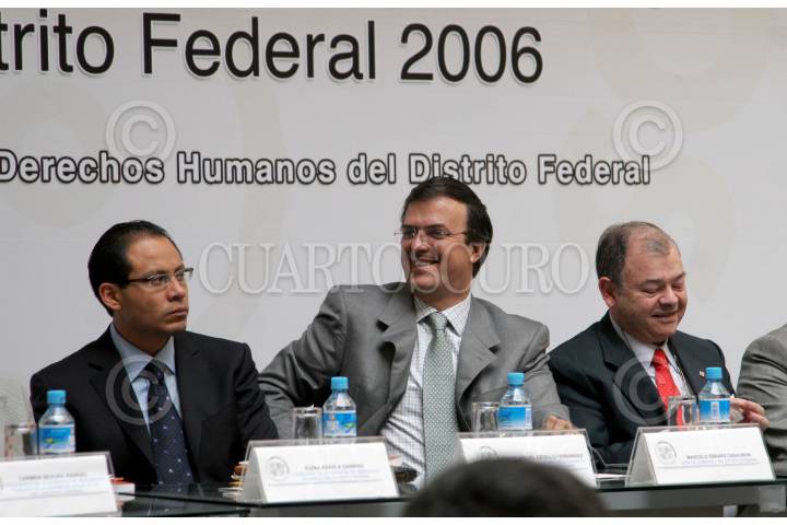 México D.F., a 7 de Febrero de 2008.- Sergio Miguel Cedillo, Marcelo Ebrard y Edgar Elías Azad, en el Informe Especial, sobre la defensoría de Oficio del Distrito Federal 2006. FOTO: VICTORIA VALTIERRA/CUARTOSCURO.COM