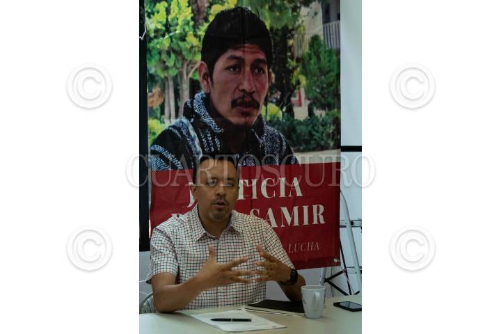 David Peña durante la conferencia de prensa con motivo del caso del asesinato del comunicador y activista Samir Flores en las inmediaciones de la organización SERAPAZ.