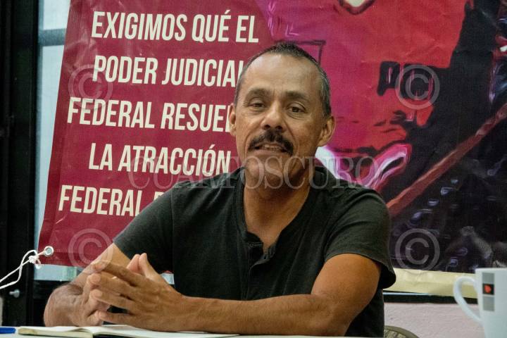 Carlos González, durante la conferencia de prensa con motivo del caso del asesinato del comunicador y activista Samir Flores en las inmediaciones de la organización SERAPAZ.