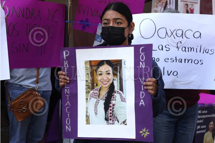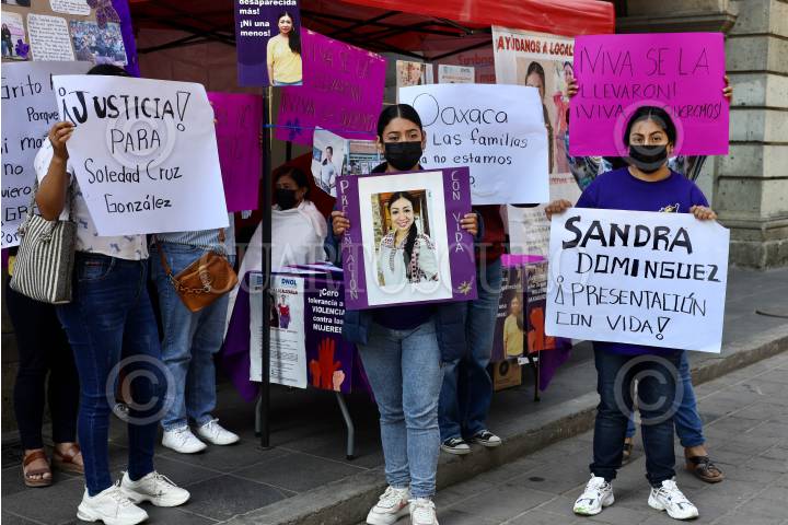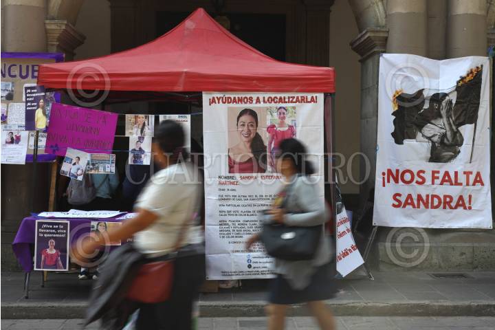 OAXACA, OAXACA, 07NOVIEMBRE2024.- Luego de 24 horas de plantón, familiares y amigos de Sandra Estefana Domínguez Martínez afirmaron que aún no hay respuesta de las autoridades para localizar a la defensora y abogada quien desapareció el pasado 4 de octubre junto con su esposo, Alexander Hernández en María Lombardo, San Juan Cotzocón. Los familiares iniciaron un plantón en el Palacio de Gobierno de Oaxaca, luego de denunciar hostigamiento y acoso. FOTO: CAROLINA JIMÉNEZ/CUARTOSCURO.COM