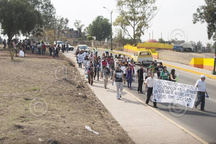 MÉXICO, D.F., 12ENERO2013.- Diversas organizaciones defensoras de los derechos de los animales volantearon a las afueras del edificio Delegacional de Iztapalapa para hacer conciencia sobre la compra de mascotas, su cuidado y responsabilidad, posteriormente marcharon a las faldas del cerro de la Estrella donde pidieron el fin a las redadas contra perros callejeros, esto derivado de las conclusiones de la PGJDF que dictó que una jauría de cánidos atacó y mató cuatro personas en dicho lugar el mes pasado. FOTO: FRANCISCO RODRÍGUEZ / CUARTOSCURO.COM