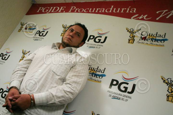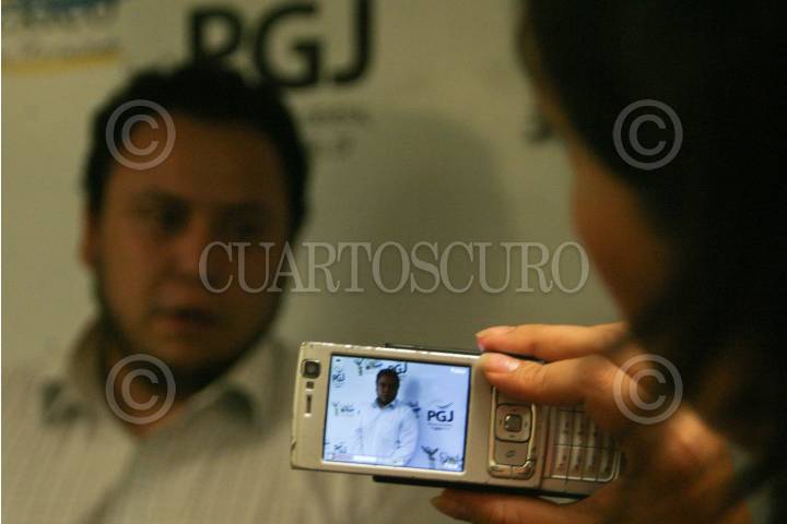MÉXICO, D.F., 22JULIO2010.- La Fiscal Central de Investigación para la Atención de Asuntos Especiales y Electorales, Margarita Vázquez Sánchez, y Antonio Guerra Arrona, Jefe de Investigación de la Agencia A, anunciaron en conferencia de prensa la detención de Ángel Daniel Rodríguez Tirado, de 28 años de edad, quien fue presentado por la Procuraduría General de Justicia del Distrito Federal (PGJDF), acusado presuntamente de defraudar a entre 150 y 200 personas a las que ofreció plazas laborales en la PGJDF. Hasta el momento hay 10 denuncias ya realizadas. FOTO: MISAEL VALTIERRA/CUARTOSCURO.COM