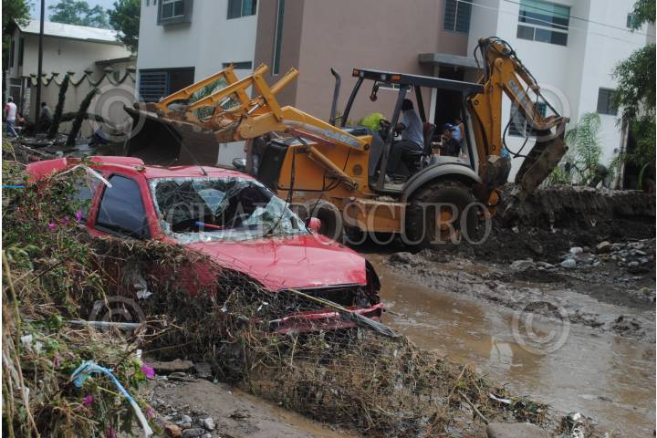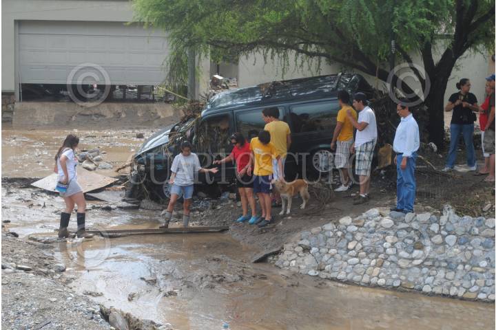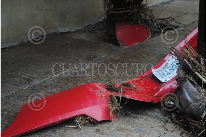 MONTERREY, NUEVO LEÓN, 03JULIO2010.- Autos atorados, destrozos en el asfalto de las calles, deslaves que impiden la vialidad y lodo en las casas por el desborde el Río La Silla dejó a su pasó el huracán Alex, aun convertido en tormenta tropical. Los daños aún son incuantificables. FOTO: MARÍA VALTIERRA/CUARTOSCURO.COM