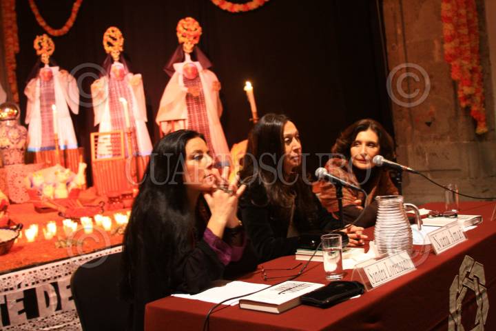 MÉXICO, D.F., 19NOVIEMBRE2008.- Nuria Amat reconocida Escritora Española, en compañía de Sandra Lorenzano y Angeles Manstretta; ambas escritoras, presentaron el libro mas reciente de la escritora primeramente mencionada, titulado "Deja que la Vida Llueva en Mi". Este melodrama literario que involucra en parte la vida de la autora, salio a la luz por primera vez en España hace 5 meses , y ahora se encuentra en los estantes de América latina. La presentación se realizo en la Universidad del Claustro de Sor Juana Ines de la Cruz. FOTO: COSME RADA/CUARTOSCURO.COM