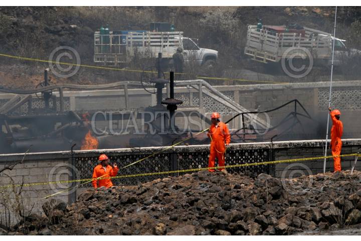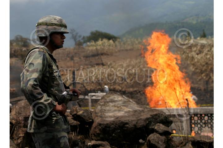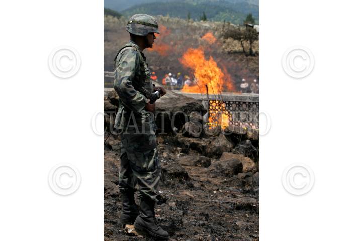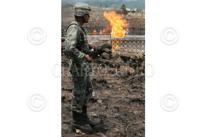 MALTRATA, VERACRUZ 11SEPTIEMBRE2007.- Despúes de 36 horas de haber explotado el gasoducto de Balastrera aun no deja de consumirse el remanente de gas natural. Hasta el momento elementos del ejercito nacional mantienen un cerco estrictamente vigilado. FOTO: SAÚL LÓPEZ ESCORCIA/CUARTOSCURO.COM