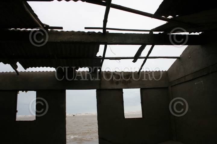 PARAISO, TABASCO, 25OCTUBRE2007.- El frente frio numero cuatro deja severos daños sobre la zona costera tabasqueña, tal es el caso del ejido La Isla en donde las humildes propiedades no resistieron los embates de la fuerza del viento y olas del mar. FOTO: MARCO POLO GUZMÁN HERNÁNDEZ/CUARTOSCURO.COM