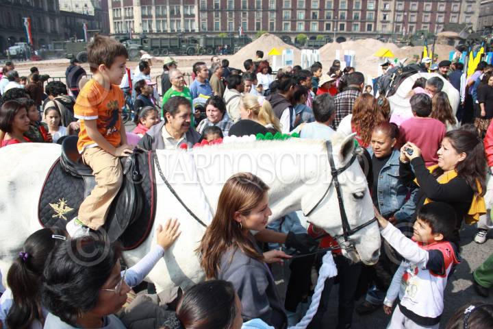 MÉXICO, D.F., 21NOVIEMBRE2009.- Al termino del desfile conmemorativo del 99 aniversario de la Revolución mexicana se los jinetes con sus caballos se dejaron fotografiar por los asistentes. FOTO: SÁSHENKA GUTIÉRREZ/CUARTOSCURO.COM