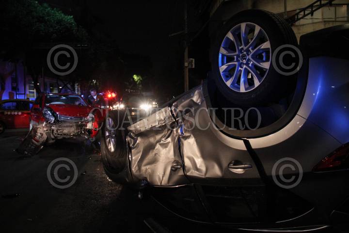 MÉXICO, D.F., 30JULIO2015.- Un joven de aproximadamente 25 años no respeto la señal de alto en el semáforo y ocasiono la volcadura de una camioneta, solo una mujer embarazada resulto herida. El accidente ocurrió en el cruce de la avenida amores y la calle Luz Saviñon en la col, Del Valle. FOTO: ISABEL MATEOS /CUARTOSCURO.COM