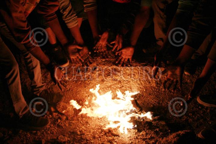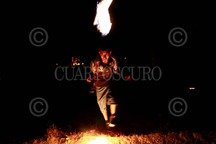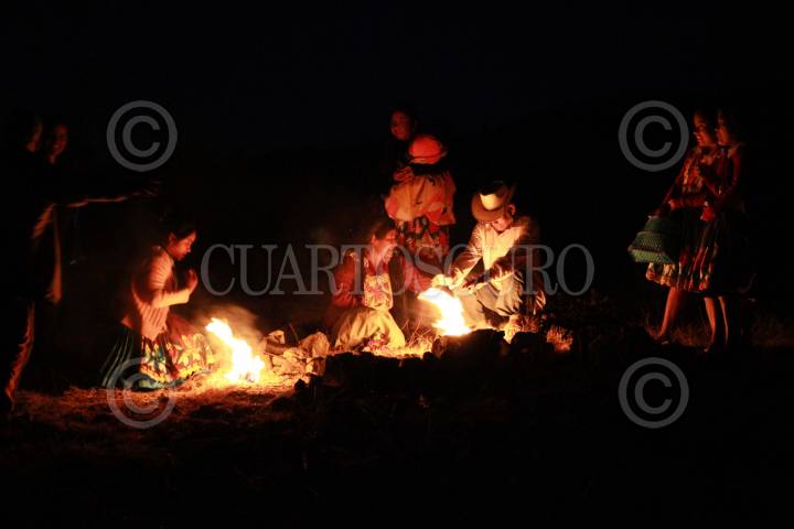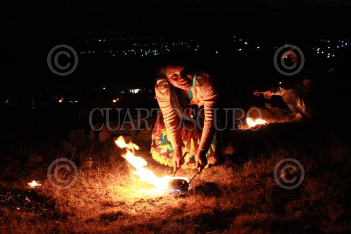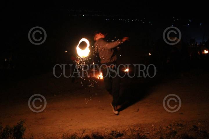 TEOTITLÁN DEL VALLE, OAXACA, 01ENERO2018.- Como cada inicio de año, habitantes zapotecos del municipio de Teotitlán Del Valle ubicada a 31 kilómetros de la capital del estado reciben el año nuevo en el cerro de El Pedimento, sitio en el que realizan una serie de peticiones a la virgen de la localidad, para ello con rocas y ramas construyen lo que desean, indígenas zapotecas ataviadas con su vestimenta tradicional crearon una serie de casas con piedras y hierbas. Dentro de sus tradiciones, los habitantes de esta localidad realizan la Danza del fuego con troncos bañados en petróleo, estos comienzan a lanzarlos por el aire unos a otros. FOTO: ARTURO PÉREZ ALFONSO/ CUARTOSCURO.COM