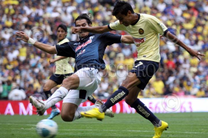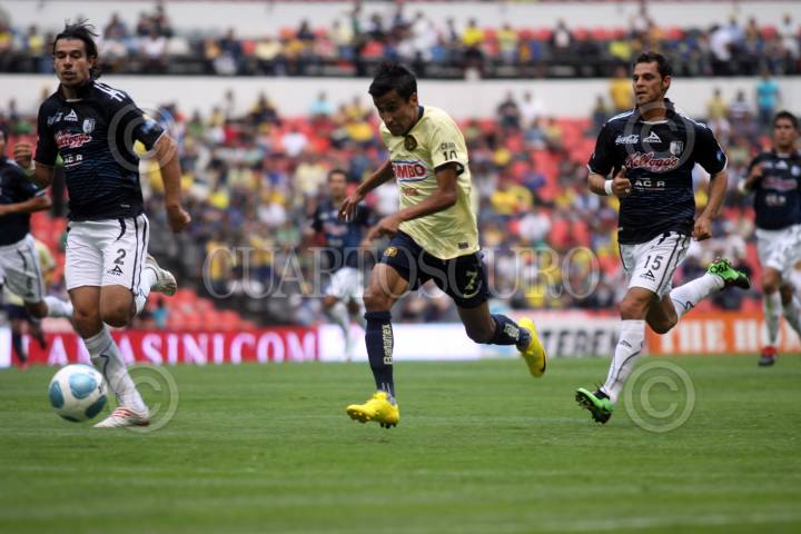 MÉXICO, D.F., 07MARZO2010.- Angel Reyna disputa el balon durante el encuentro con Queretaro, partido dela fecha 9 del torneo bicentenario, quedando un marcador final de 6-0 favor America. FOTO: SÁSHENKA GUTIÉRREZ/CUARTOSCURO.COM