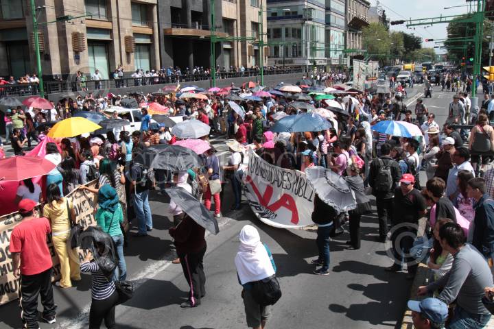 MÉXICO, D.F. 23JULIO2013.-Alrededor de 200 jóvenes pertenecientes al El Movimiento de Aspirantes Excluidos de la Educación Superior (Maes) marcharon esta mañana de la avenida Bucareli, a la altura de la Secretaría de Gobernación, a la Secretaría de Educación Pública (SEP), en la calle de Brasil, donde los dirigentes aclararon que los 5 mil lugares anunciados el domingo por la SEP (que se agregarían a los 36 mil que en principio se abrieron, como parte del Programa Emergente de Matrícula de Educación Superior, para alcanzar 41 mil 406) representan los espacios que "nadie quiere ocupar" debido a que no resuelven la demanda de carreras entre los estudiantes. La agrupación, conformada por jóvenes rechazados de licenciatura en diversas instituciones públicas de educación superior, subrayó que entre las carreras ofrecidas no se incluye ninguna licenciatura de artes, humanidades, ciencias sociales ni ciencias básicas, además de que la mayoría de las opciones son del sistema de educación a distancia. FOTO: JUAN PABLO ZAMORA /CUARTOSCURO.COM