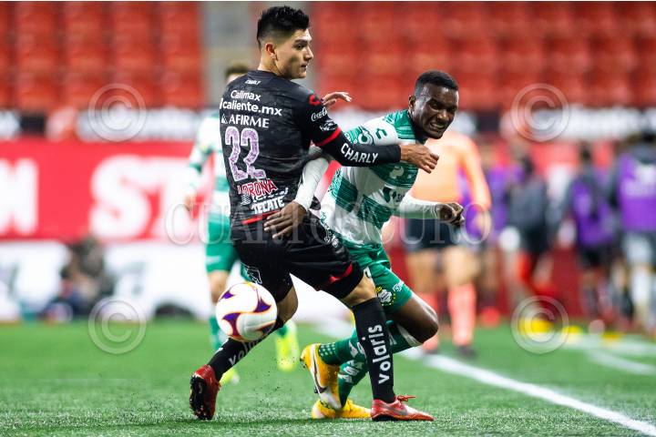 Félix Torres Calcedo (Santos) intenta desbordar por la banda.