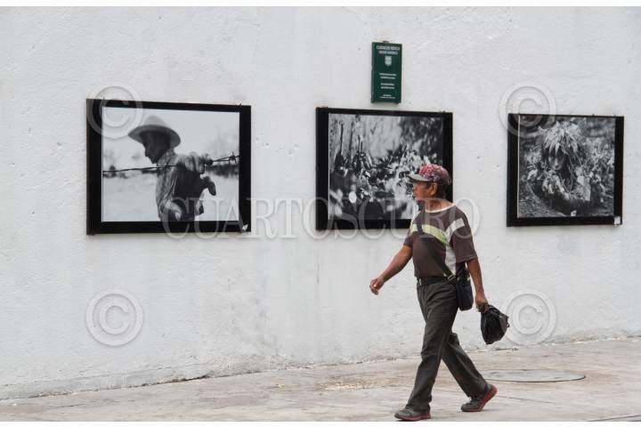 CIUDAD DE MÉXICO, 10JULIO2017.- Los transeúntes que caminan por la calle de Artículo 123, entre la avenida Balderas y la calle de Humboldt, detienen su marcha presurosa para observar las imágenes que integran la exposición "Retrospectiva de Pedro Valtierra". FOTO: MOISÉS PABLO /CUARTOSCURO.COM
